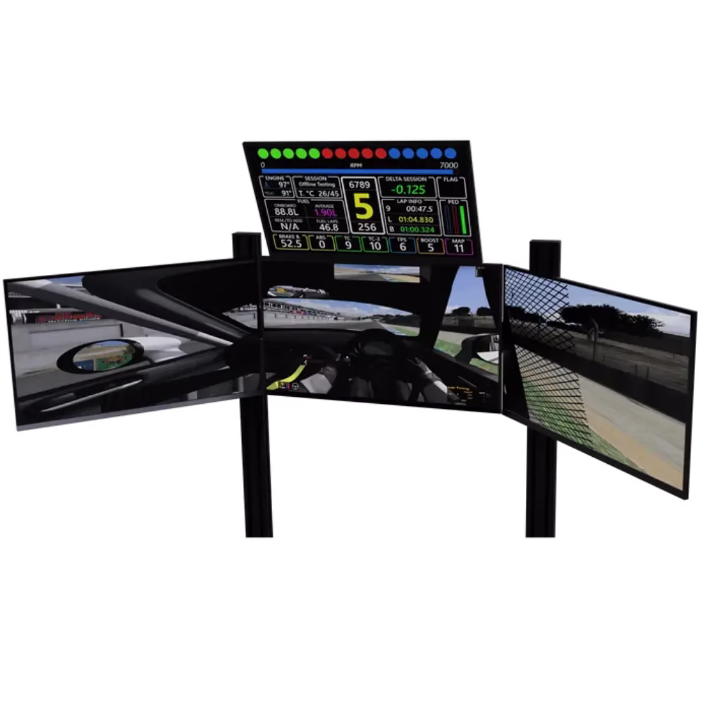 Conçue pour les passionnés de SimRacing, les créateurs de contenu et les professionnels multitâches, cette solution robuste et bien ajustée te permet d'ajouter un... écran supérieur sans compromettre la stabilité ou l'ergonomie de ton poste de travail.